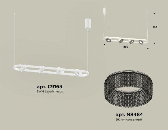 Комплект подвесного поворотного светильника с композитным хрусталем XB9163200/4 SWH/BK белый песок/тонированный GX53 (C9163, N8484)