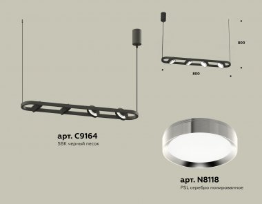 Комплект подвесного поворотного светильника XB9164101/4 SBK/PSL черный песок/серебро полированное GX53 (C9164, N8118)