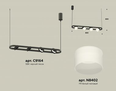 Комплект подвесного поворотного светильника с акрилом XB9164154/4 SBK/FR черный песок/белый матовый GX53 (C9164, N8402)