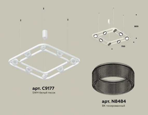 Комплект подвесного поворотного светильника с композитным хрусталем XB9177200/8 SWH/BK белый песок/тонированный GX53 (C9177, N8484)