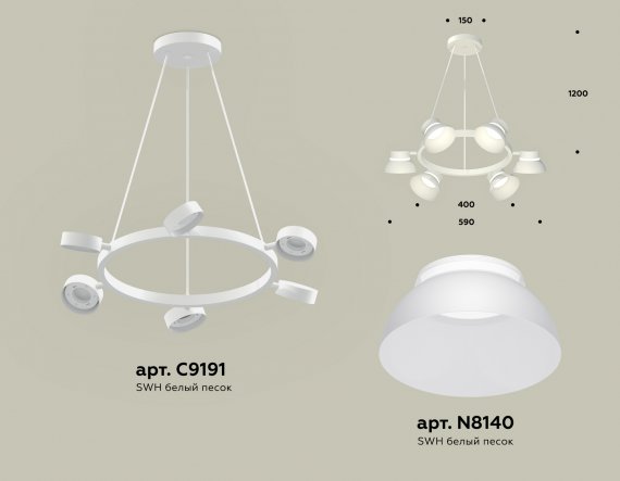 Комплект подвесного поворотного светильника XB9191100/6 SWH/FR белый песок/белый матовый GX53 (C9191, N8140)
