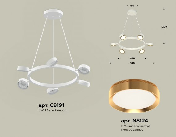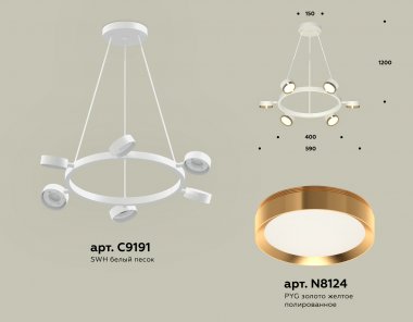 Комплект подвесного поворотного светильника XB9191152/6 SWH/PYG белый песок/золото желтое полированное GX53 (C9191, N8124)