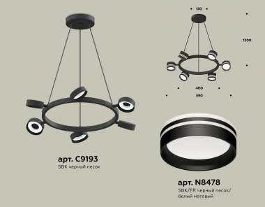 Комплект подвесного поворотного светильника с акрилом XB9193202/6 SBK/FR черный песок/белый матовый GX53 (C9193, N8478)