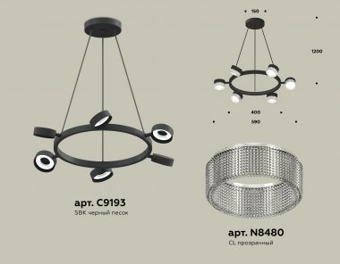 Комплект подвесного поворотного светильника с композитным хрусталем XB9193250/6 SBK/CL черный песок/прозрачный GX53 (C9193, N8480)