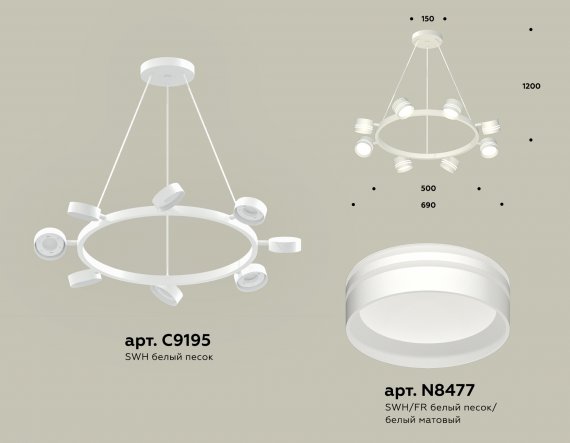 Комплект подвесного поворотного светильника с акрилом XB9195202/8 SWH/FR белый песок/белый матовый GX53 (C9195, N8477)