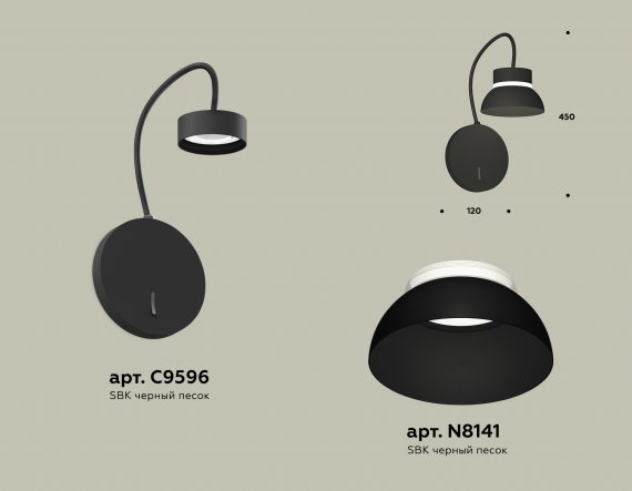 Комплект настенного светильника с выключателем XB9596100 SBK/FR черный песок/белый матовый GX53 (C9596, N8141)