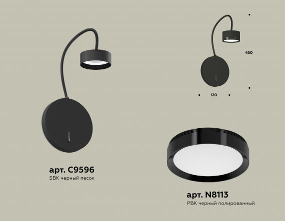 Комплект настенного светильника с выключателем XB9596150 SBK/PBK черный песок/черный полированный GX53 (C9596, N8113)