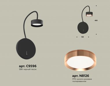 Комплект настенного светильника с выключателем XB9596153 SBK/PPG черный песок/золото розовое полированное GX53 (C9596, N8126)