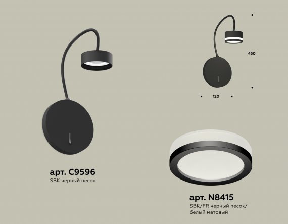 Комплект настенного светильника с выключателем и акрилом XB9596200 SBK/FR черный песок/белый матовый GX53 (C9596, N8415)