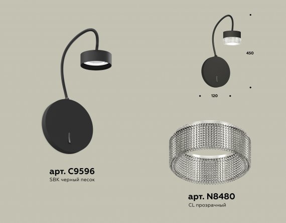 Комплект настенного светильника с выключателем и композитным хрусталем XB9596250 SBK/CL черный песок/прозрачный GX53 (C9596, N8480)