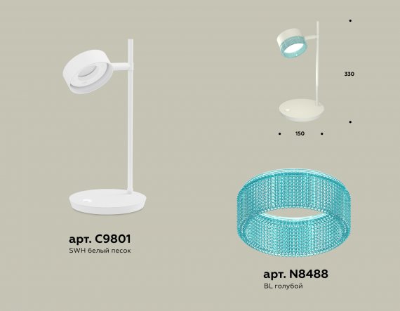Комплект настольного поворотного светильника с композитным хрусталем XB9801251 SWH/BL белый песок/голубой GX53 (C9801, N8488)