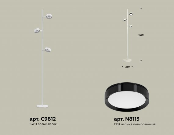 Комплект напольного поворотного светильника XB9812151/3 SWH/PBK белый песок/черный полированный GX53 (C9812, N8113)