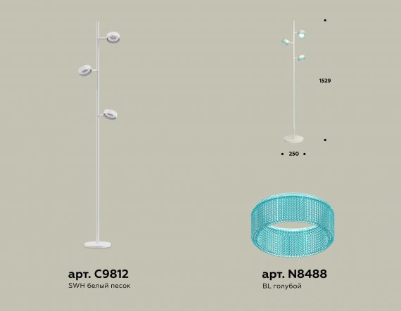 Комплект напольного поворотного светильника с композитным хрусталем XB9812251/3 SWH/BL белый песок/голубой GX53 (C9812, N8488)