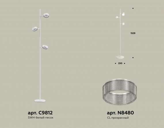 Комплект напольного поворотного светильника с композитным хрусталем XB9812252/3 SWH/CL белый песок/прозрачный GX53 (C9812, N8480)