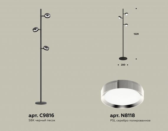 Комплект напольного поворотного светильника XB9816151/3 SBK/PSL черный песок/серебро полированное GX53 (C9816, N8118)