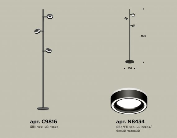 Комплект напольного поворотного светильника с акрилом XB9816201/3 SBK/FR черный песок/белый матовый GX53 (C9816, N8434)