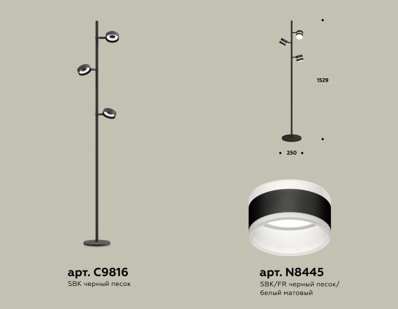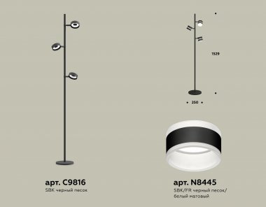 Комплект напольного поворотного светильника с акрилом XB9816202/3 SBK/FR черный песок/белый матовый GX53 (C9816, N8445)