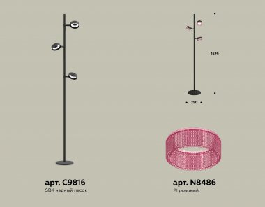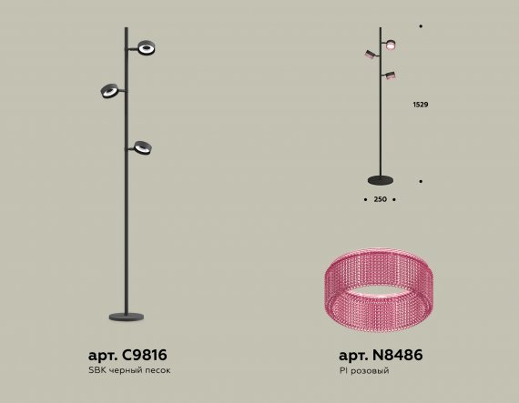 Комплект напольного поворотного светильника с композитным хрусталем XB9816251/3 SBK/PI черный песок/розовый GX53 (C9816, N8486)