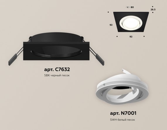 Ambrella XC7632080 Комплект встраиваемого поворотного светильника SBK/SWH