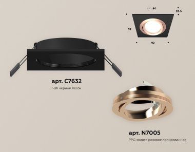 Комплект встраиваемого поворотного светильника XC7632084 SBK/PPG черный песок/золото розовое полированное MR16 GU5.3 (C7632, N7005)