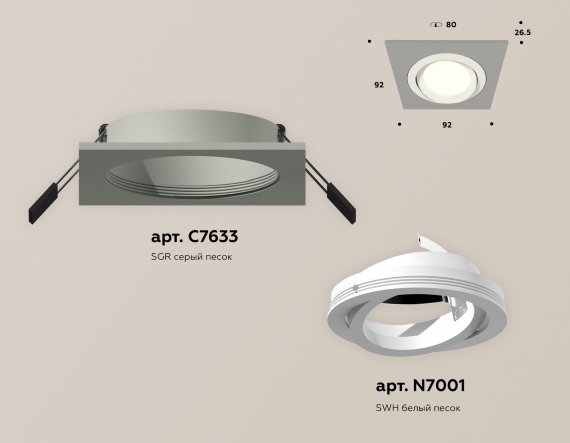 Комплект встраиваемого поворотного светильника XC7633080 SGR/SWH серый песок/белый песок MR16 GU5.3 (C7633, N7001)