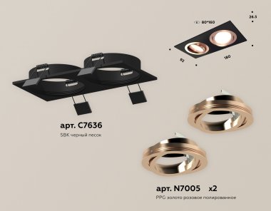 Комплект встраиваемого поворотного светильника XC7636084 SBK/PPG черный песок/золото розовое полированное MR16 GU5.3 (C7636, N7005)