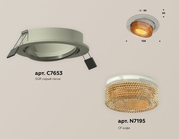 Комплект встраиваемого поворотного светильника XC7653064 SGR/CF серый песок/кофе MR16 GU5.3 (C7653, N7195)