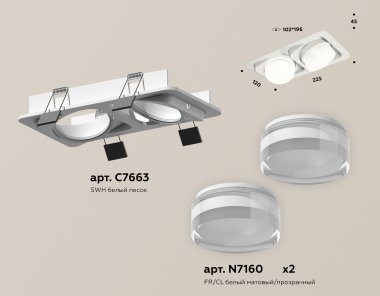 Комплект встраиваемого поворотного светильника XC7663083 SWH/FR/CL белый песок/белый матовый/прозрачный MR16 GU5.3 (C7663, N7160)
