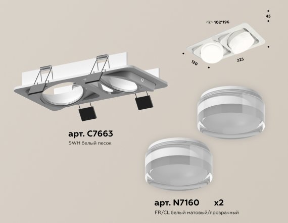 Ambrella XC7663083 Комплект встраиваемого поворотного светильника SWH/FR/CL