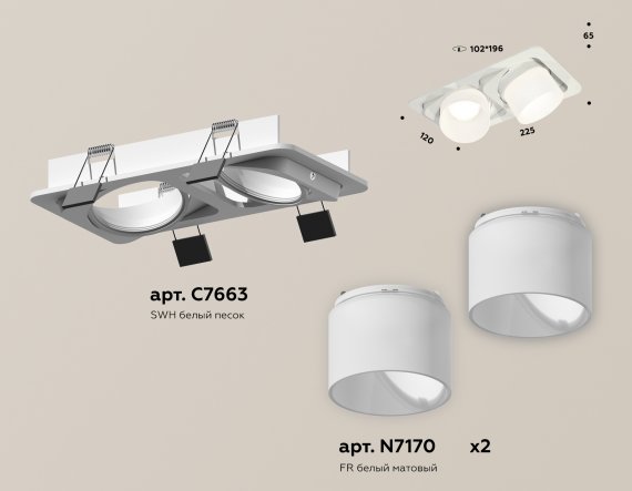 Комплект встраиваемого поворотного светильника XC7663085 SWH/FR белый песок/белый матовый MR16 GU5.3 (C7663, N7170)