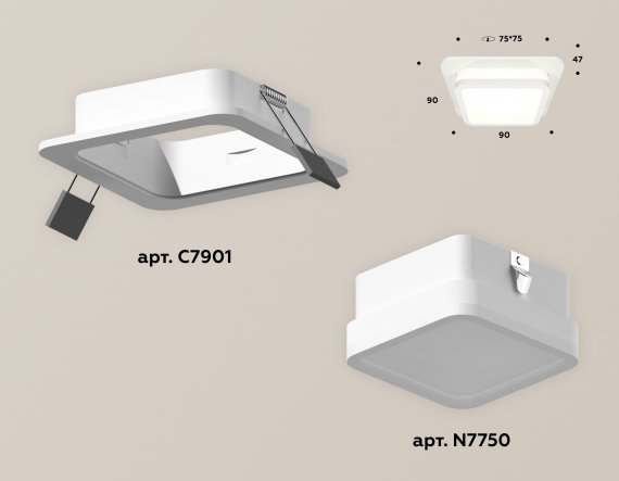 Комплект встраиваемого светильника с акрилом XC7901012 SWH/FR белый песок/белый матовый MR16 GU5.3 (C7901, N7750)