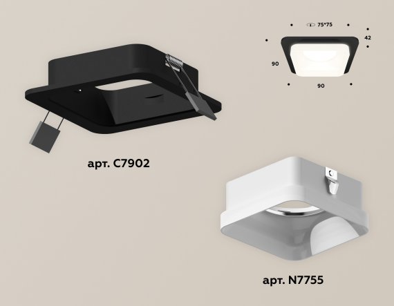 Комплект встраиваемого светильника с акрилом XC7902013 SBK/FR черный песок/белый матовый MR16 GU5.3 (C7902, N7755)