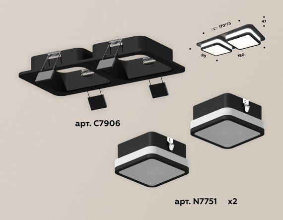 Ambrella XC7906012 Комплект встраиваемого светильника с акрилом SBK/FR