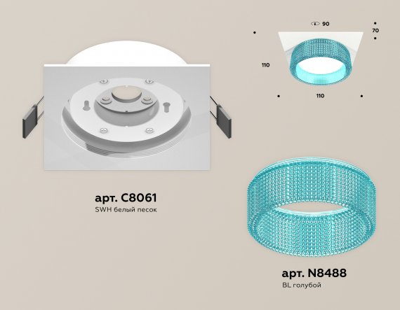 Комплект встраиваемого светильника XC8061033 SWH/BL белый песок/голубой GX53 (C8061, N8488)