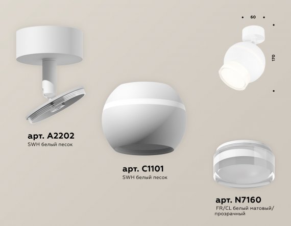 Комплект поворотного светильника с дополнительной подсветкой XM1101016 SWH/FR/CL белый песок/белый матовый/прозрачный MR16 GU5.3 LED 3W 4200K (A2202,C1101,N7160)