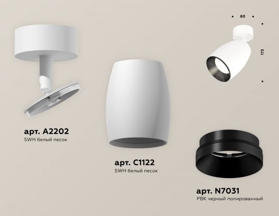 Комплект поворотного светильника XM1122001 SWH/PBK белый песок/черный полированный MR16 GU5.3 (A2202, C1122, N7031)