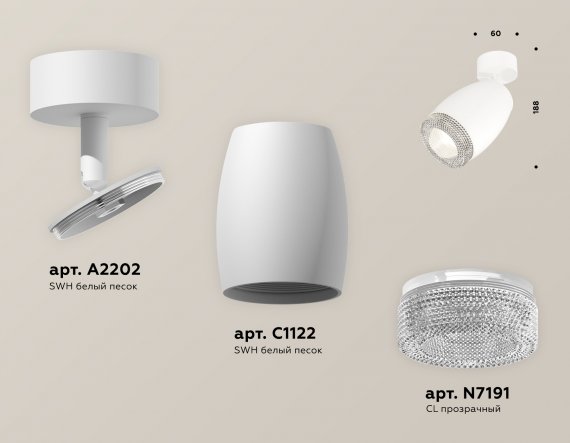 Комплект поворотного светильника XM1122002 SWH/CL белый песок/прозрачный MR16 GU5.3 (A2202, C1122, N7191)