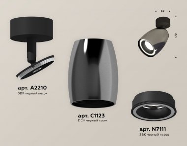 Комплект поворотного светильника XM1123003 DCH/SBK черный хром/черный песок MR16 GU5.3 (A2210, C1123, N7111)
