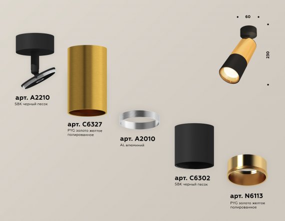 Комплект поворотного XM6302010 SBK/PYG черный песок/золото желтое полированное MR16 GU5.3 (A2210, C6327, A2010, C6302, N6113)
