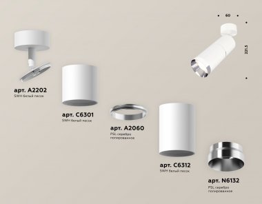 Комплект поворотного светильника XM6312010 SWH/PSL белый песок/серебро полированное MR16 GU5.3 (A2202, C6301, A2060, C6312, N6132)