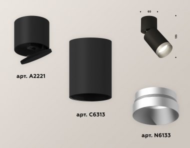 Комплект накладного поворотного светильника XM6313043 SBK/BK/MCH черный песок/черный/хром матовый MR16 GU5.3 (A2221, C6313, N6133)
