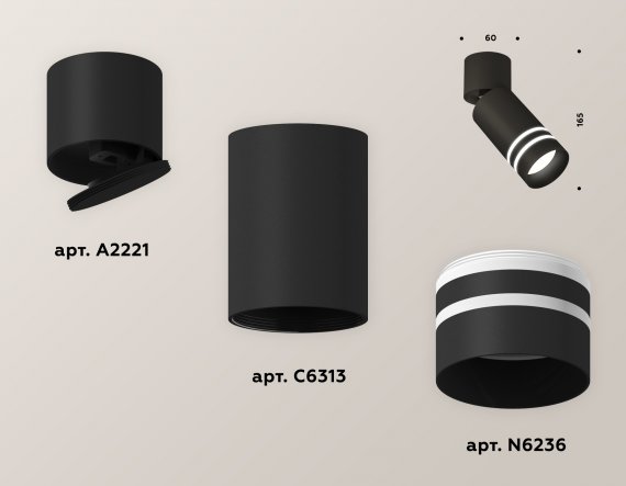 Комплект накладного поворотного светильника XM6313086 SBK/BK/FR черный песок/черный/белый матовый MR16 GU5.3 (A2221, C6313, N6236)