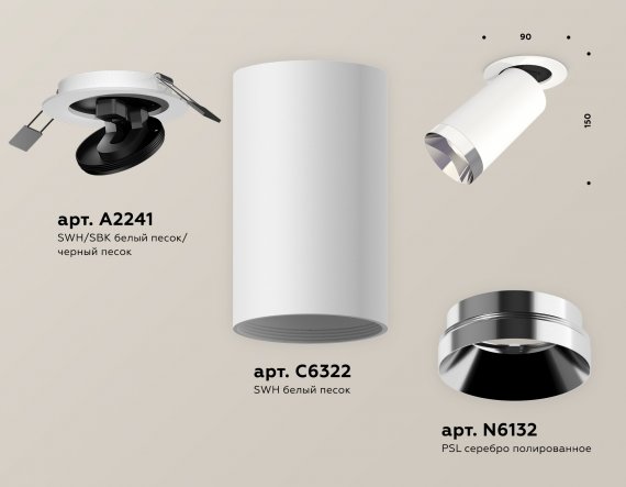 Комплект встраиваемого поворотного светильника XM6322202 SWH/PSL белый песок/серебро полированное MR16 GU5.3 (A2241, C6322, N6132)