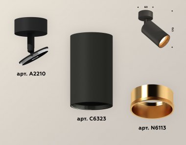 Комплект накладного поворотного светильника XM6323004 SBK/PYG черный песок/золото желтое полированное MR16 GU5.3 (A2210, C6323, N6113)