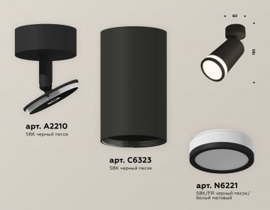 Комплект поворотного светильника XM6323013 SBK/FR черный песок/белый матовый MR16 GU5.3 (A2210, C6323, N6221)