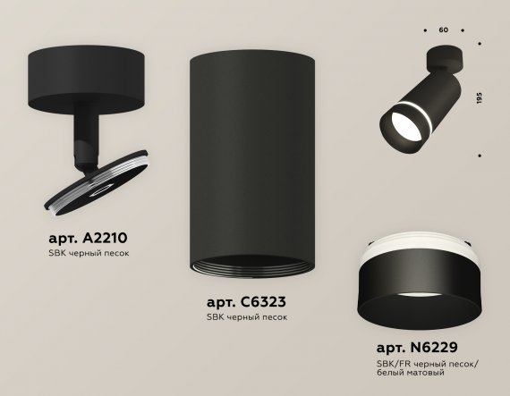 Комплект поворотного светильника XM6323014 SBK/FR черный песок/белый матовый MR16 GU5.3 (A2210, C6323, N6229)