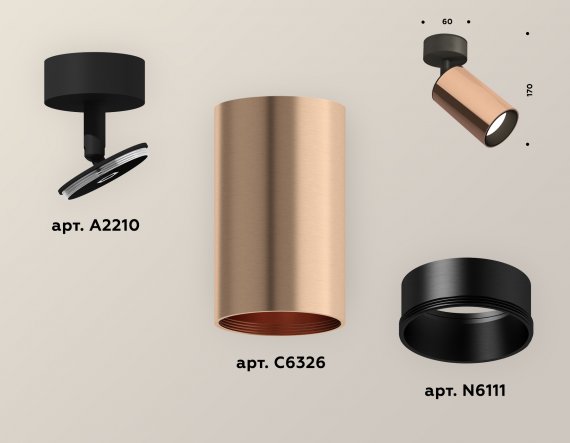 Комплект накладного поворотного светильника XM6326020 PPG/SBK золото розовое полированное/черный песок MR16 GU5.3 (A2210, C6326, N6111)