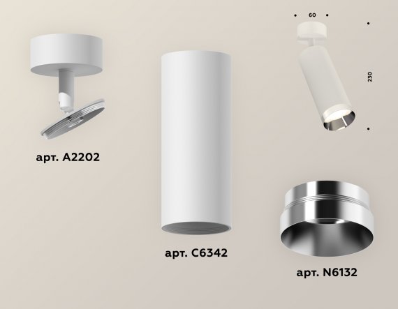 Комплект накладного поворотного светильника XM6342003 SWH/PSL белый песок/серебро полированное MR16 GU5.3 (A2202, C6342, N6132)