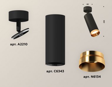 Комплект накладного поворотного светильника XM6343005 SBK/PYG черный песок/золото желтое полированное MR16 GU5.3 (A2210, C6343, N6134)