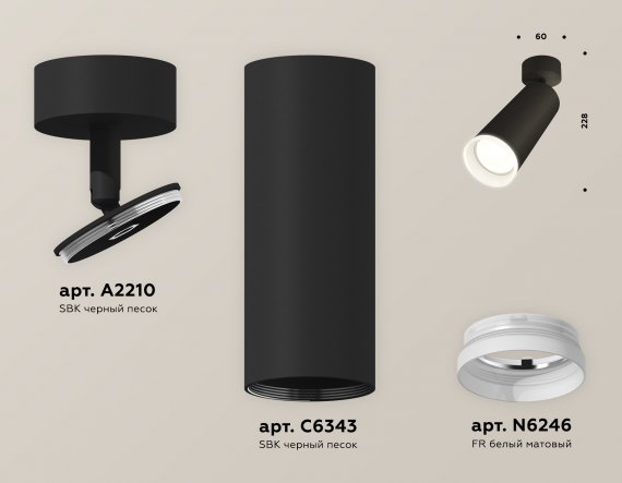 Комплект поворотного светильника XM6343010 SBK/FR черный песок/белый матовый MR16 GU5.3 (A2210, C6343, N6246)